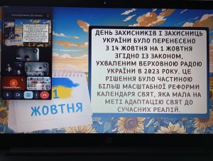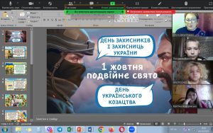 Хвилиною тиші розпочався перший день жовтня в Оскільському ліцеї. Учні 1 – 9 класів продовжили знайомитись з історією козацтва, результатами масштабної реформи календаря свят, дякували Захисникам та Захисницям за кожен світанок. Вихованці 10 – 11 класів сьогодні матимуть змогу взяти участь у Парламентському онлайн – уроці до Дня Захисників і Захисниць України.