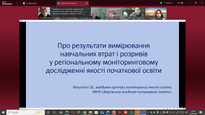 Центром моніторингу якості освіти ХАНО, 23.10.2025, проведено засідання круглого столу «Шляхи підвищення ефективності навчання для подолання навчальних втрат і розривів у ЗЗСО. У межах засідання круглого столу було обговорено попередні результати тестування учнів 5 класів у межах регіонального моніторингу якості початкової освіти та такі питання:
