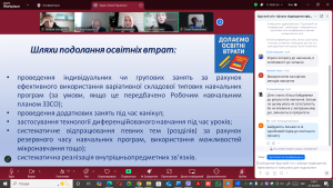 Центром моніторингу якості освіти ХАНО, 23.10.2025, проведено засідання круглого столу «Шляхи підвищення ефективності навчання для подолання навчальних втрат і розривів у ЗЗСО. У межах засідання круглого столу було обговорено попередні результати тестування учнів 5 класів у межах регіонального моніторингу якості початкової освіти та такі питання: